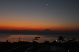 富士山 今年初冠雪 葉山ハートセンターからの眺めは本当に最高であります。本日は朝やけの中、逗子の海岸線ぞいを運転していたら、本当に美しい富士がみえました。本日今年初冠雪のようです。病院についてさっそく写真機をとりだして撮影。でも少し時間がたつと霞がでてきてしまいました。今日の空気は冬のにおいがしました。空気がすんでいたせいか、夕日はこれまた最高のグラデーションでした。