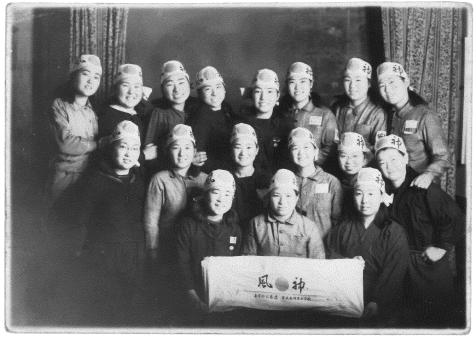 勤労奉仕の記念写真、少しほっとする元気な笑顔ですが